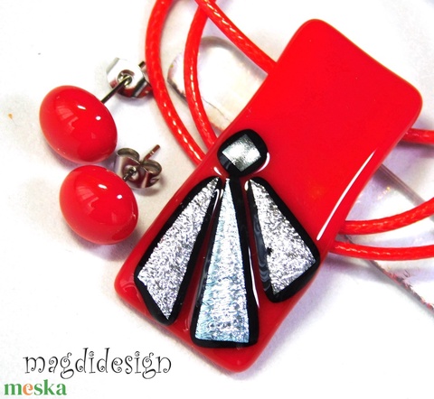 Ezüst szögek meggypirosban üvegékszer szett 1