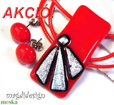 AKCIÓ! Ezüst szögek meggypirosban üvegékszer szett 1