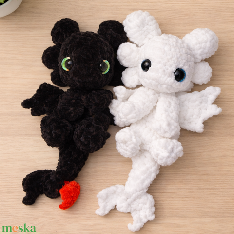 Horgolt Fogatlan és Fényfúria ihlette sárkány plüss