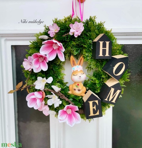 Magnólia ajtódísz, kopogtató, tavaszi dekoráció, ajtódísz