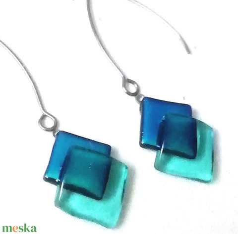 ORVOSI FÉM ! Kék-türkiz kockák trendi fülbevaló , ajándék névnapra, születésnapra.