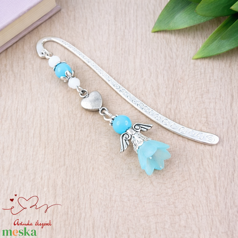 Angyal könyvjelző világoskék gyöngyökkel - meghitt karácsonyi ajándék könyvszeretőknek