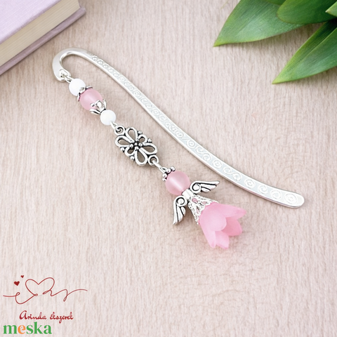 Angyal könyvjelző rózsaszín gyöngyökkel - meghitt karácsonyi ajándék könyvszeretőknek