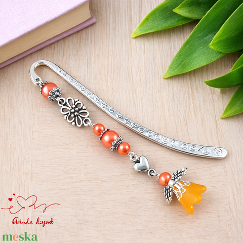 Angyal könyvjelző narancssárga gyöngyökkel - meghitt karácsonyi ajándék könyvszeretőknek