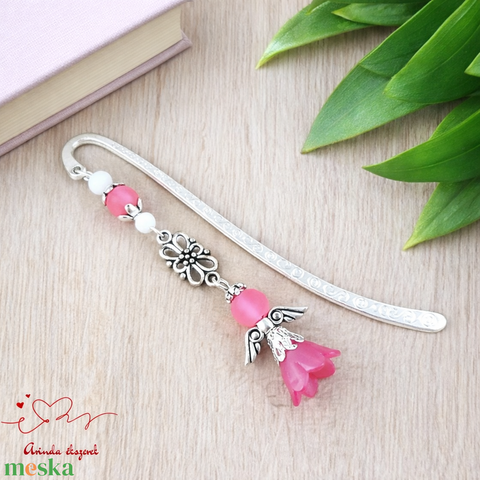Angyal könyvjelző pink gyöngyökkel - meghitt karácsonyi ajándék könyvszeretőknek