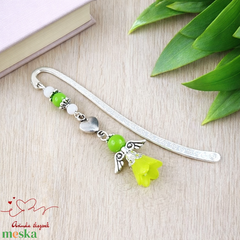 Angyal könyvjelző zöld gyöngyökkel - meghitt karácsonyi ajándék könyvszeretőknek