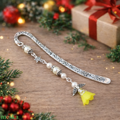 Angyal könyvjelző citromsárga gyöngyökkel - meghitt karácsonyi ajándék könyvszeretőknek