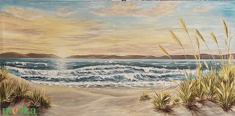 - Anyaga: akrilfesték, fakeret, vászonlap, művésztinta, aláírás, rétegezett felület, időtálló festék, akril festék