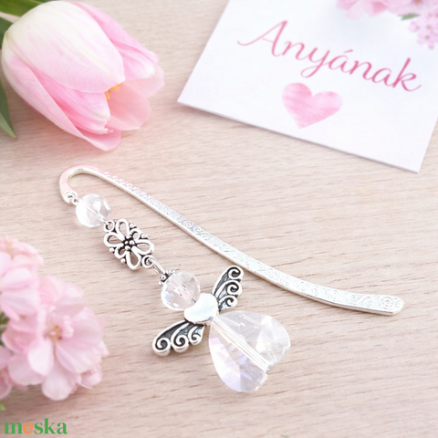 Ez a kézzel készült angyalkás könyvjelző különleges és szívhez szóló ajándék anyák napjára. Az angyal motívum a gondoskodást, védelmet és szeretetet jelképezi – mindazt, amit egy édesanya nap mint nap ad. Letisztult, elegáns megjelenése miatt egyszerre praktikus és érzelmes meglepetés.