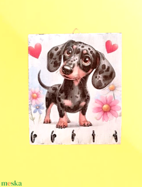 Fali kulcstartó aranyos kis tacskó kutyussal