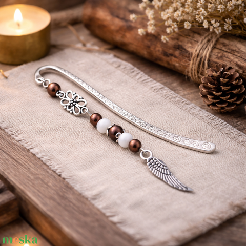 Angyalszárny könyvjelző barna gyöngyökkel - kézzel készült ajándék könyvszeretőknek