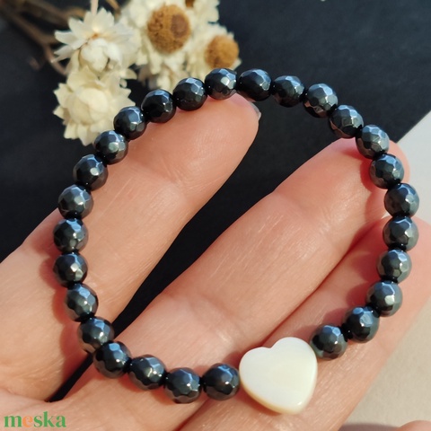 - Anyaga: gumiszál, aurás achát, kagylógyöngy