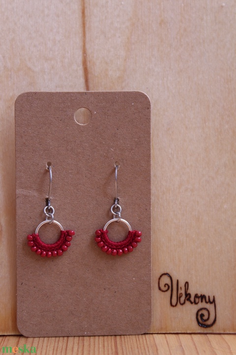 Mini "gyöngyöző" horgolt fülbevaló (piros)