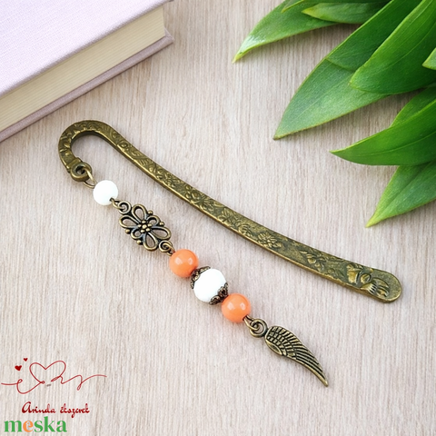 Angyalszárny könyvjelző narancs gyöngyökkel - kézzel készült ajándék könyvszeretőknek