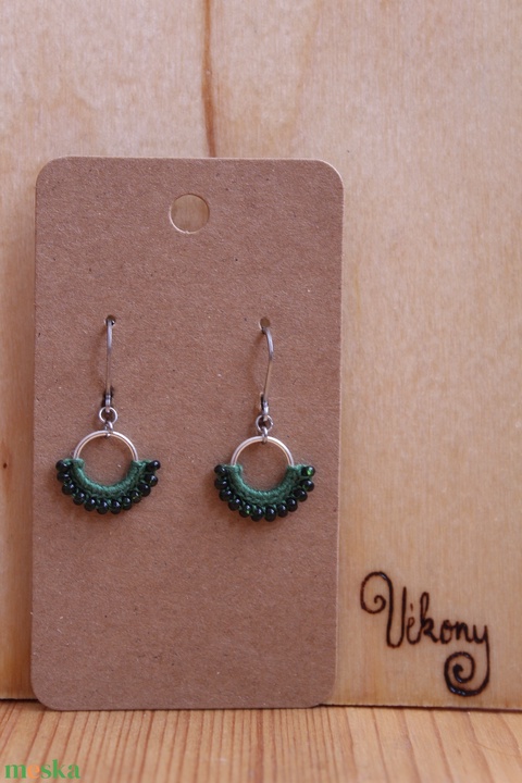 Mini "gyöngyöző" horgolt fülbevaló (zöld)