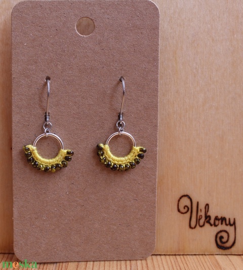 Mini "gyöngyöző" horgolt fülbevaló (sárga)