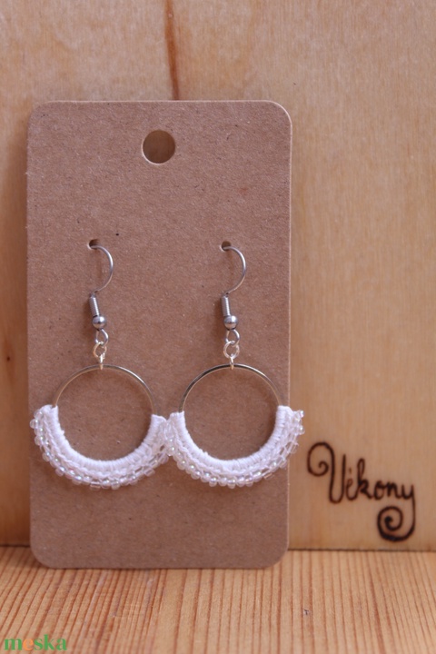 "Gyöngyöző" horgolt fülbevaló (fehér)