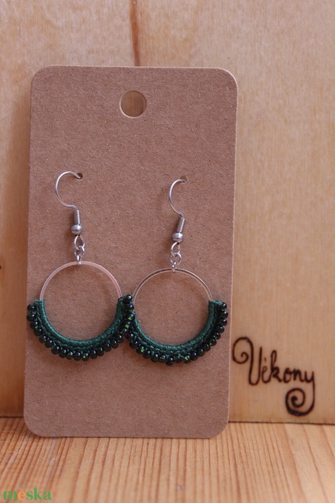 "Gyöngyöző" horgolt fülbevaló (zöld)
