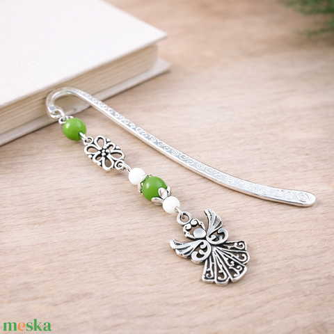 Angyalkás könyvjelző pedagógusnapra - kedves ajándék tanároknak és óvónőknek zöld színben