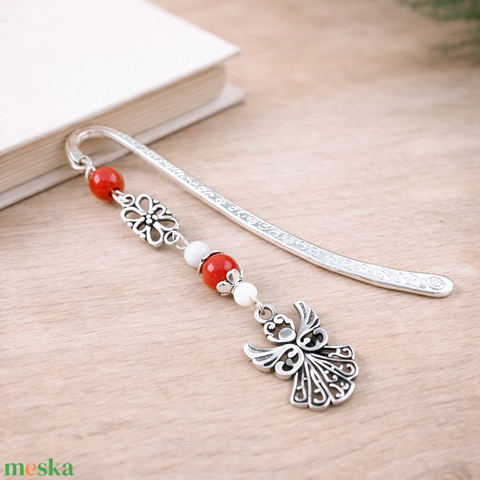 Angyalkás könyvjelző pedagógusnapra - kedves ajándék tanároknak és óvónőknek piros színben