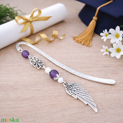 Angyalszárnyas könyvjelző - évzáró ajándék ballagásra, év végi köszönetként lila színben