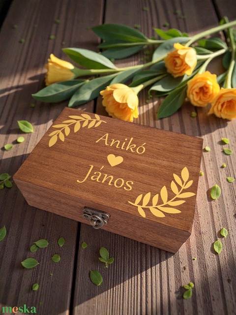 Esküvői pénzátadó doboz, nászajándék - sötét dió, tükörfólia (arany)