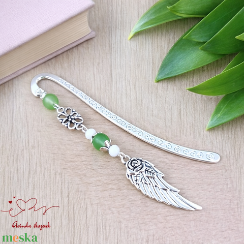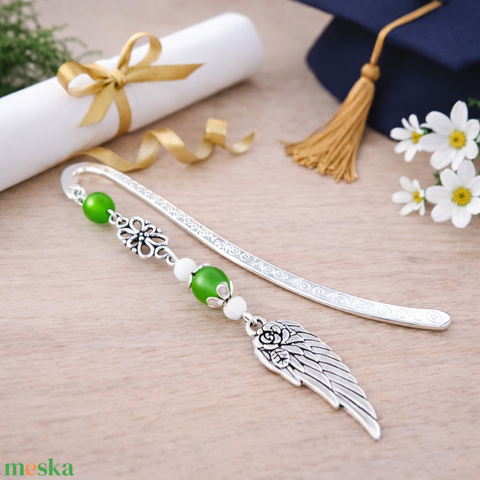 Angyalszárnyas könyvjelző - évzáró ajándék ballagásra, év végi köszönetként zöld színben