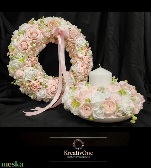 Rózsaszín-fehér virágos tavaszi kopogtató asztaldísszel