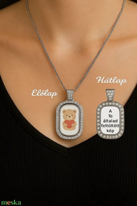 Kétoldalas kristályos nyaklánc – egyedi fotóval és macis mintával