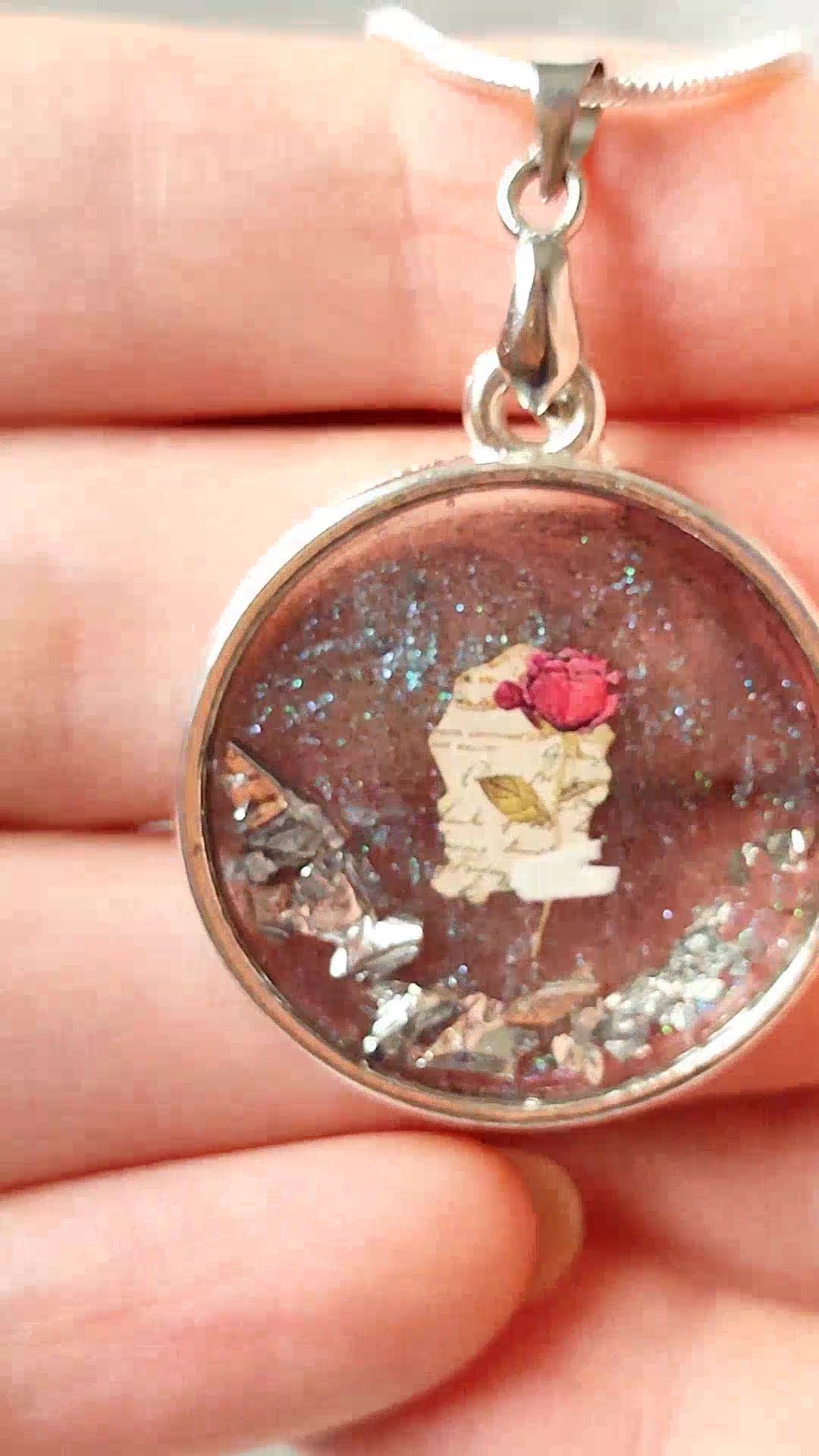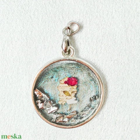 Vintage Romantika – Csillogó Műgyanta Medál Vörös Rózsával