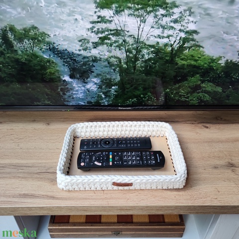 Ekrü - horgolt szögletes tálca