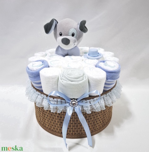 Kutyus baba box, pelenkatorta 4-8 kg pelenkatorony, babaváró csomag, kelengye