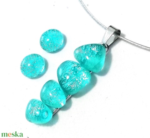 AKCIÓ! NEMESACÉL! Türkiz kavicsok dichroic ékszerszett.