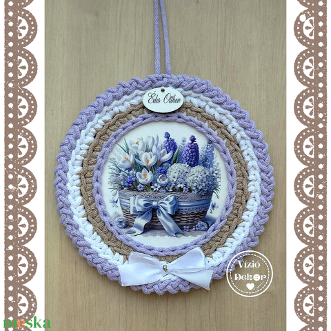 Horgolt szegélyű tavaszi, virágos tábla