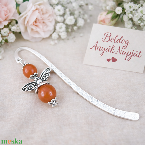Anyák napi ásvány angyal könyvjelző karneollal - szeretettel készült ajándék édesanyáknak