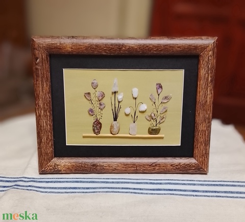 Cserepes virágos kavicskép féldrágakövekből