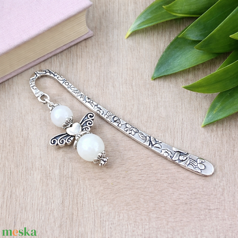 Anyák napi ásvány angyal könyvjelző fehér jadeval - szeretettel készült ajándék édesanyáknak