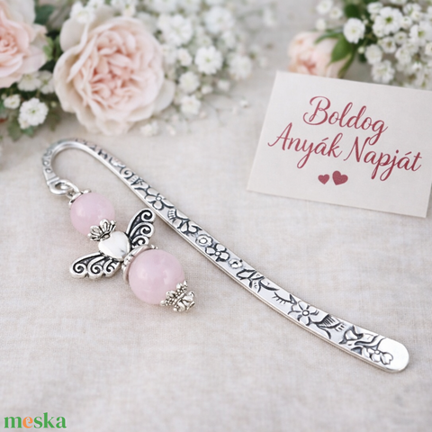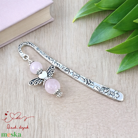 Anyák napi ásvány angyal könyvjelző rózsakvarccal - szeretettel készült ajándék édesanyáknak