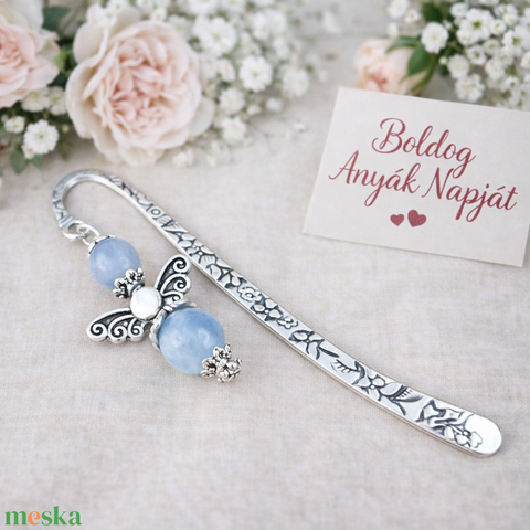 Anyák napi ásvány angyal könyvjelző akvamarinnal - szeretettel készült ajándék édesanyáknak