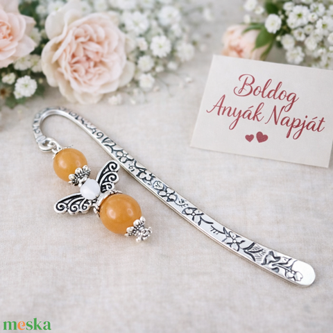 Anyák napi ásvány angyal könyvjelző narancs aventurinnal - szeretettel készült ajándék édesanyáknak
