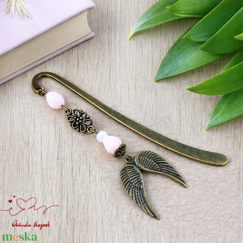 Dupla angyalszárny könyvjelző rózsaszín gyöngyökkel - meghitt karácsonyi ajándék könyvszeretőknek