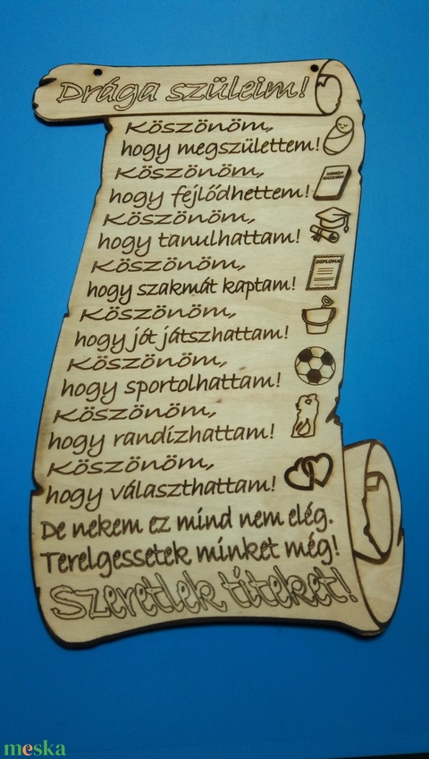 Esküvői Szülőköszöntő pergamen. Ajándék falitábla esküvőre. Apának, anyának szívből adható, falra akasztható emléktábla.