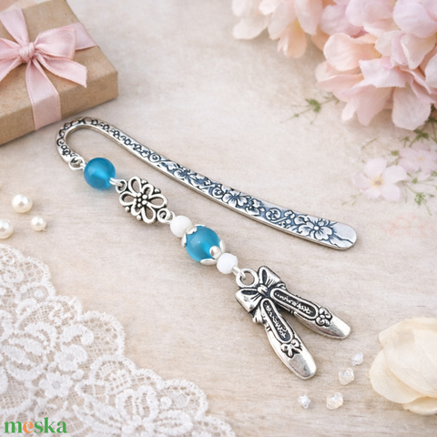Balettcipő könyvjelző kék-fehér gyöngyökkel – elegáns ajándék táncosoknak, balett rajongóknak