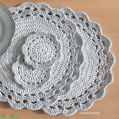 Fényes horgolt pohár- és tányéralátét csomag választott színben