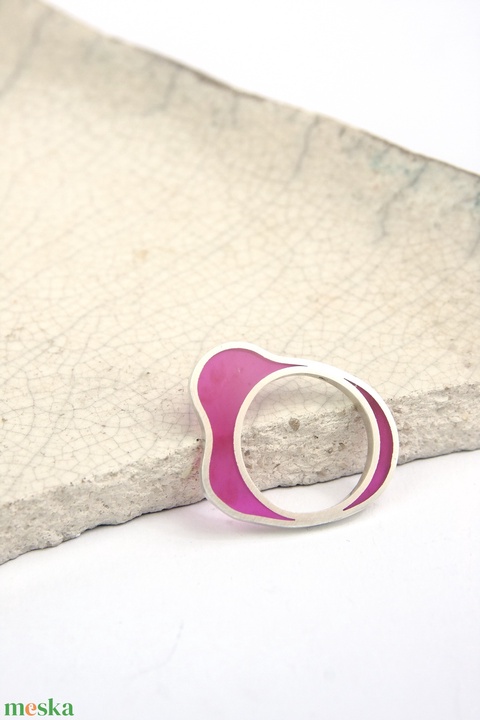 Amőba pink - ezüst gyűrű