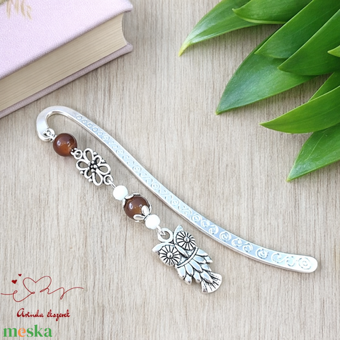 Bagoly könyvjelző barna gyöngyökkel – kézműves ajándék olvasóknak és tanároknak