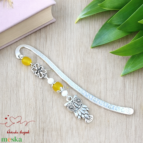 Bagoly könyvjelző sárga gyöngyökkel – kézműves ajándék olvasóknak és tanároknak