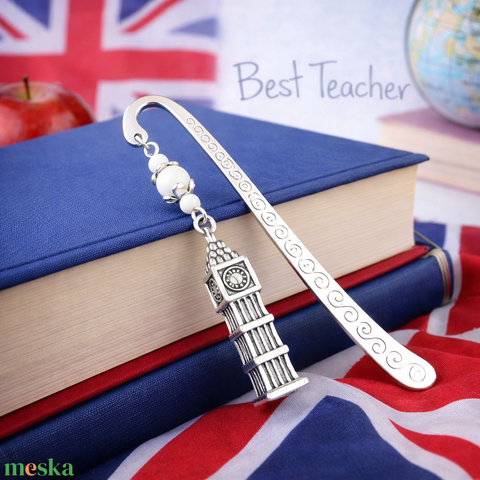 Big Ben könyvjelző – angoltanár ajándék pedagógusnapra, évzáróra, egyedi fém könyvjelző London motívummal