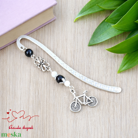 Biciklis könyvjelző – sportos, természetkedvelő ajándék szülinapra, névnapra fekete gyöngyökkel