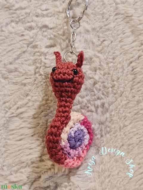Kézműves horgolt kabalafigurás kulcstartó - Mini csiga (Anna)